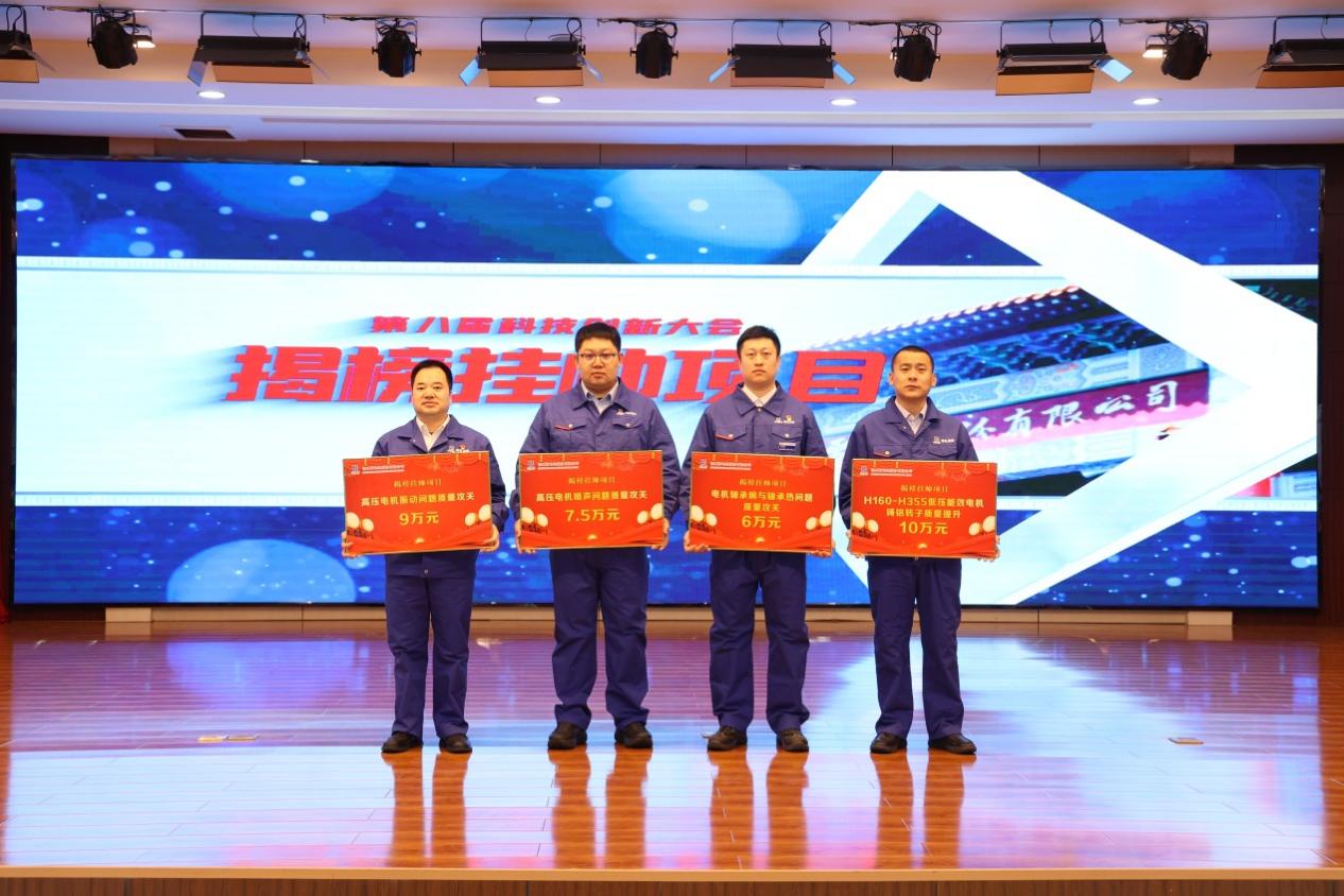 3月16日,哈電集團(tuán)佳木斯電機(jī)股份有限公司(以下簡(jiǎn)稱“佳電股份”)隆重召開第八屆科技創(chuàng)新大會(huì),對(duì)公司2023年度在科技工作上做出突出貢獻(xiàn)的集體和個(gè)人進(jìn)行了表彰獎(jiǎng)勵(lì)。獲獎(jiǎng)代表對(duì)重大科技項(xiàng)目做了情況介紹與經(jīng)驗(yàn)分享。佳電股份副總經(jīng)理潘波做年度科技工作報(bào)告。哈電集團(tuán)黨委常委、副總經(jīng)理,公司董事長(zhǎng)劉清勇出席會(huì)議并講話。佳電股份黨委書記、總經(jīng)理劉漢成主持會(huì)議,并與第二批揭榜掛帥項(xiàng)目負(fù)責(zé)人代表簽訂了項(xiàng)目目標(biāo)責(zé)任狀。佳電股份領(lǐng)導(dǎo)班子成員出席會(huì)議,有關(guān)單位中層領(lǐng)導(dǎo)人員及技術(shù)戰(zhàn)線全體科技人員參加會(huì)議。