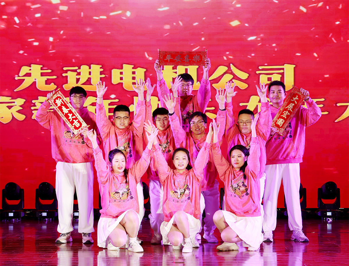 迎新春聯(lián)歡會(huì)共分為“璀璨華夏龍騰盛世、四季福暖共筑和諧、青春激揚(yáng)筑夢(mèng)佳電、砥礪奮進(jìn)開(kāi)拓創(chuàng)新、揚(yáng)帆起航再續(xù)華章”五個(gè)篇章21個(gè)節(jié)目,全部由廣大干部職工自編自導(dǎo)自演,歌曲、相聲、舞蹈、小品、樂(lè)器及朗誦等文藝表演精彩紛呈,讓人目不暇接,在熱烈的開(kāi)場(chǎng)舞《祖國(guó)你好》中拉開(kāi)帷幕,歡樂(lè)的舞蹈表達(dá)了廣大職工對(duì)祖國(guó)的熱愛(ài)和對(duì)企業(yè)發(fā)展的堅(jiān)定信念。