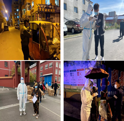 鐘帥每天4點(diǎn)起床,5點(diǎn)開始組織隊(duì)員到食堂為職工做飯,分發(fā)一日三餐,搬運(yùn)蔬菜包,為新入廠職工分發(fā)折疊床以及被褥,到超市選取所需生活物品,帶領(lǐng)防疫工作者“大白”到各個(gè)車間為職工進(jìn)行核酸檢測,從未叫苦叫累;郝健業(yè)主動(dòng)擔(dān)當(dāng)作為,哪需要人手哪就看到他的身影,食堂,超市,搬運(yùn)物資,核酸檢測,經(jīng)常晚上八九點(diǎn)鐘還沒有回寢;關(guān)昊天為保障食堂能按時(shí)出菜,他經(jīng)常半彎著腰清洗大量餐具,直到工作結(jié)束,腰才能勉強(qiáng)直起來,他還積極參加各種義務(wù)勞動(dòng),宿舍樓道里的窗臺,暖氣,窗框,寢室外的垃圾,一號路兩旁的落葉,都有他干活的身影。馬秋宇在食堂后廚幫忙,兩筐土豆,加上冰冷的水,讓他切完土豆后手都凍得通紅,握刀的手掌還磨出了水泡,但他隔天還是參與了后廚備菜的工作;喬雙露是唯一一個(gè)在食堂后勤幫忙的女生,每天備菜、后廚的衛(wèi)生清潔以及三餐的分發(fā)都有她的身影,她對工作毫無怨言,與男生們一樣默默堅(jiān)持堅(jiān)守。劉成坤有用不完的力氣,搬菜、送餐,他都搶在前面,即使手上和腿上受了傷,他還是每日堅(jiān)持送餐任務(wù);王文旭主動(dòng)承擔(dān)開車運(yùn)飯工作,每日他都提前到食堂取餐,只為了盡早將一日三餐送到各個(gè)車間員工的手上,讓大家吃上熱乎乎的飯菜……