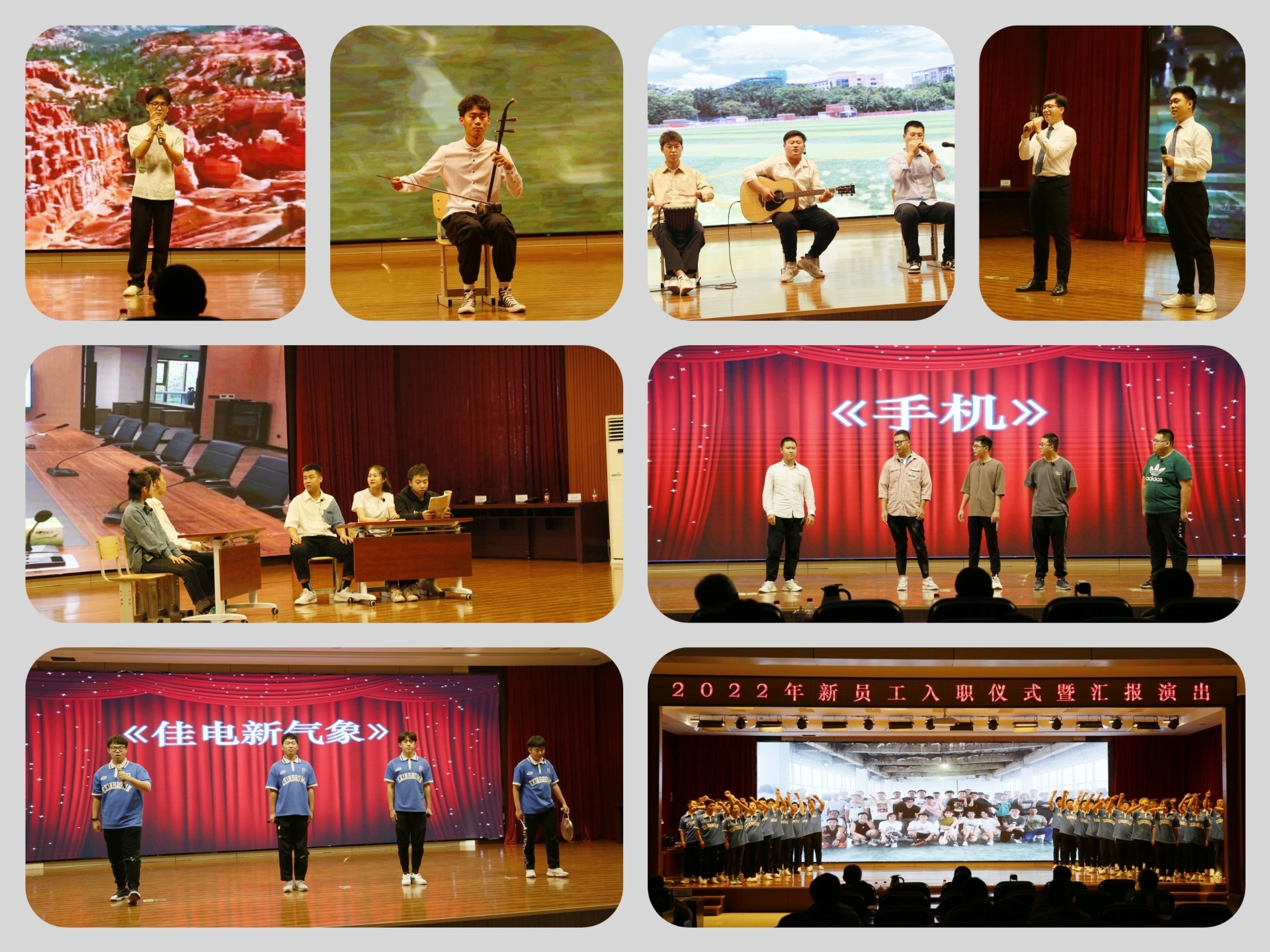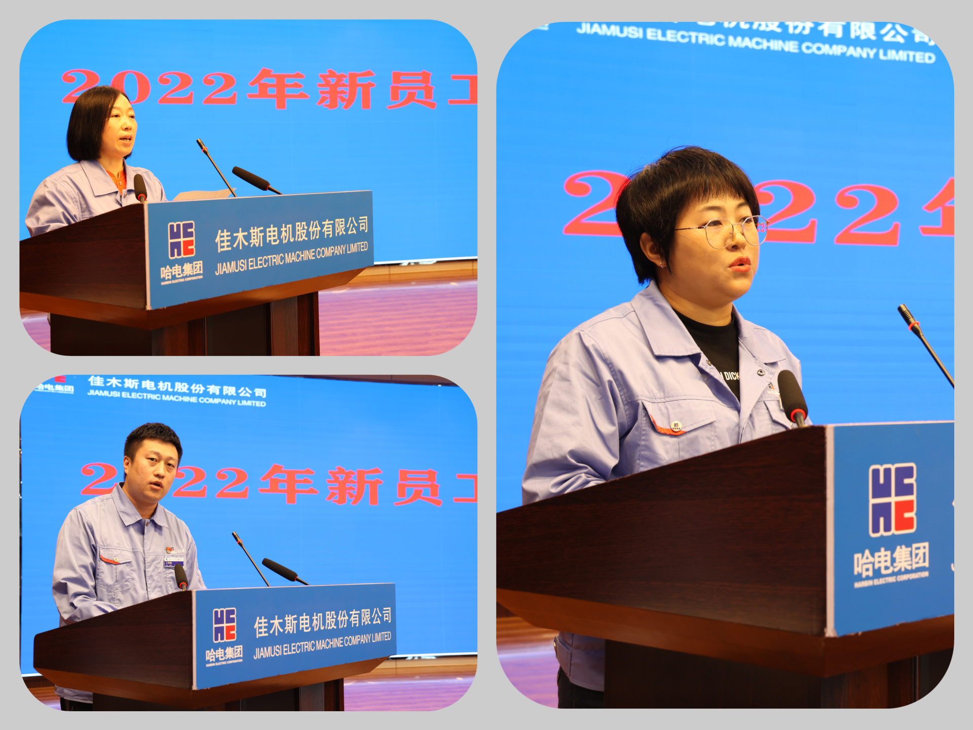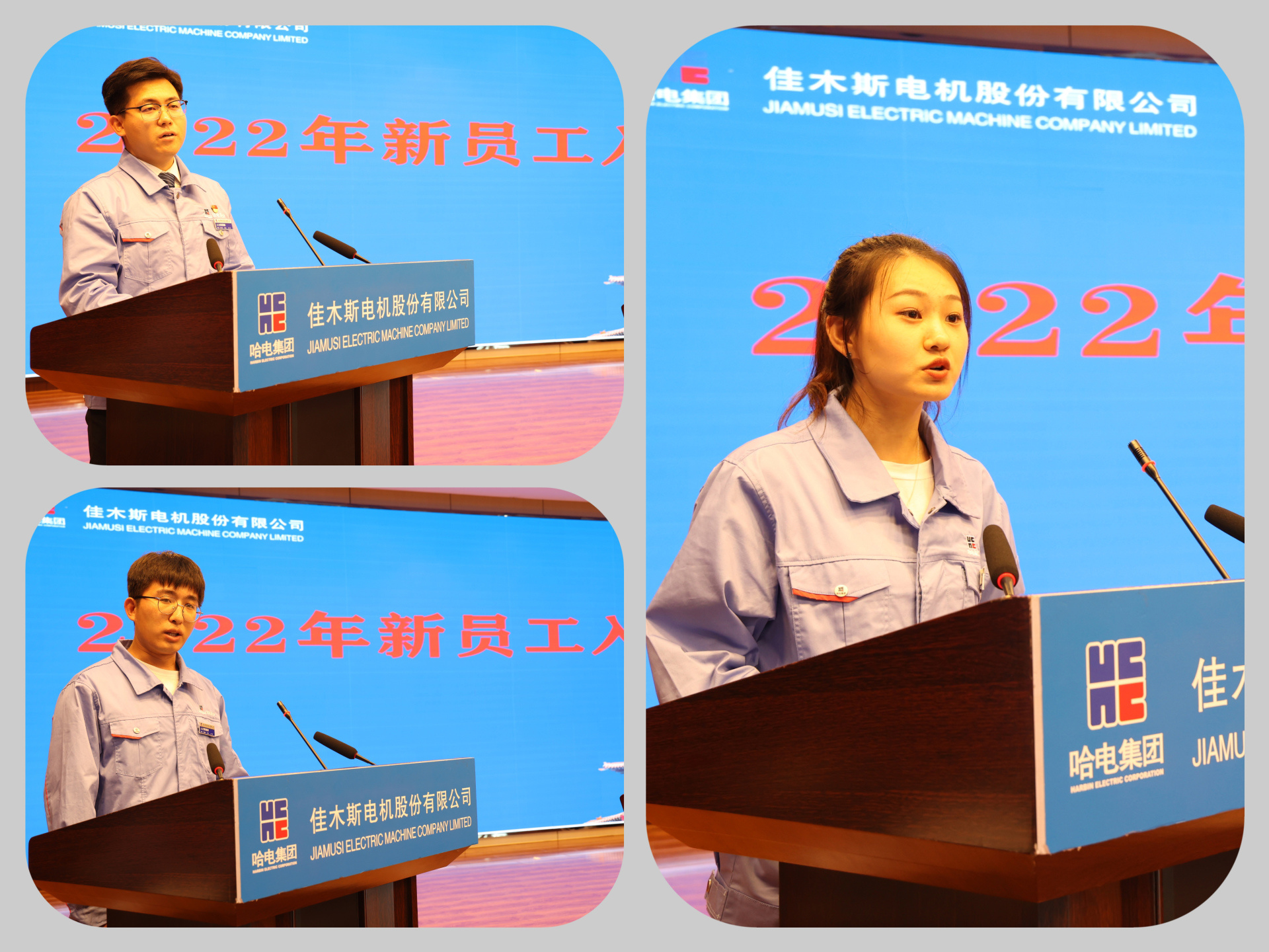 在入職儀式上,3名新員工代表進行發(fā)言,他們用真摯樸實的話語講述了認識佳電、融入佳電的過程和感受,用堅定昂揚的態(tài)度展現(xiàn)了他們奮斗青春、暢想未來的勇氣與責任。
