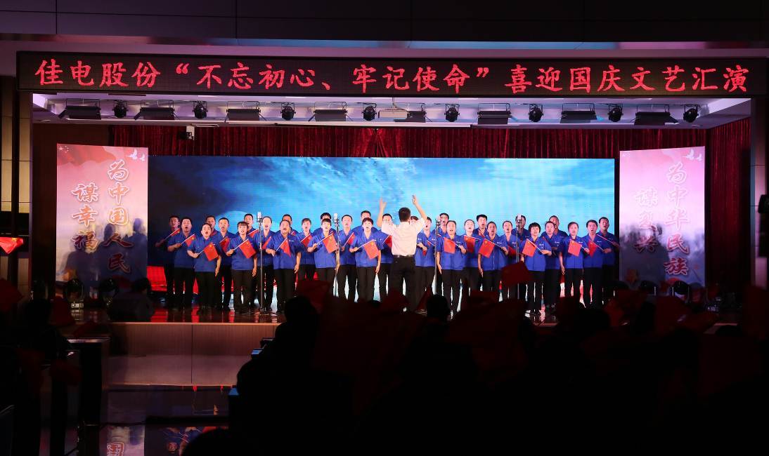 17時(shí),伴隨著《沒(méi)有共產(chǎn)黨就沒(méi)有新中國(guó)》的嘹亮歌聲,佳電股份“不忘初心、牢記使命”喜迎國(guó)慶文藝匯演拉開(kāi)序幕。