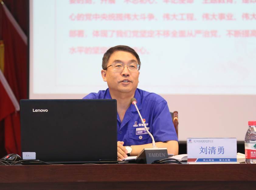 黨課最后他表示,公司當(dāng)前正處于推動高質(zhì)量發(fā)展的關(guān)鍵時期,我們要以此次主題教育活動為契機(jī),高標(biāo)準(zhǔn)高質(zhì)量開展好“不忘初心、牢記使命”主題教育,真正把習(xí)近平新時代中國特色社會主義思想,轉(zhuǎn)化為落實(shí)集團(tuán)公司“12348”發(fā)展戰(zhàn)略、推動公司高質(zhì)量發(fā)展的實(shí)際行動,把初心使命轉(zhuǎn)化成廣大黨員干部拼搏奉獻(xiàn)的精神動力,埋頭苦干、開拓創(chuàng)新,大步邁向?qū)崿F(xiàn)“通用板塊進(jìn)一流”的遠(yuǎn)大征程,奮力譜寫新時代公司高質(zhì)量發(fā)展的新篇章,以優(yōu)異的成績?yōu)樽鎳?0華誕獻(xiàn)禮!