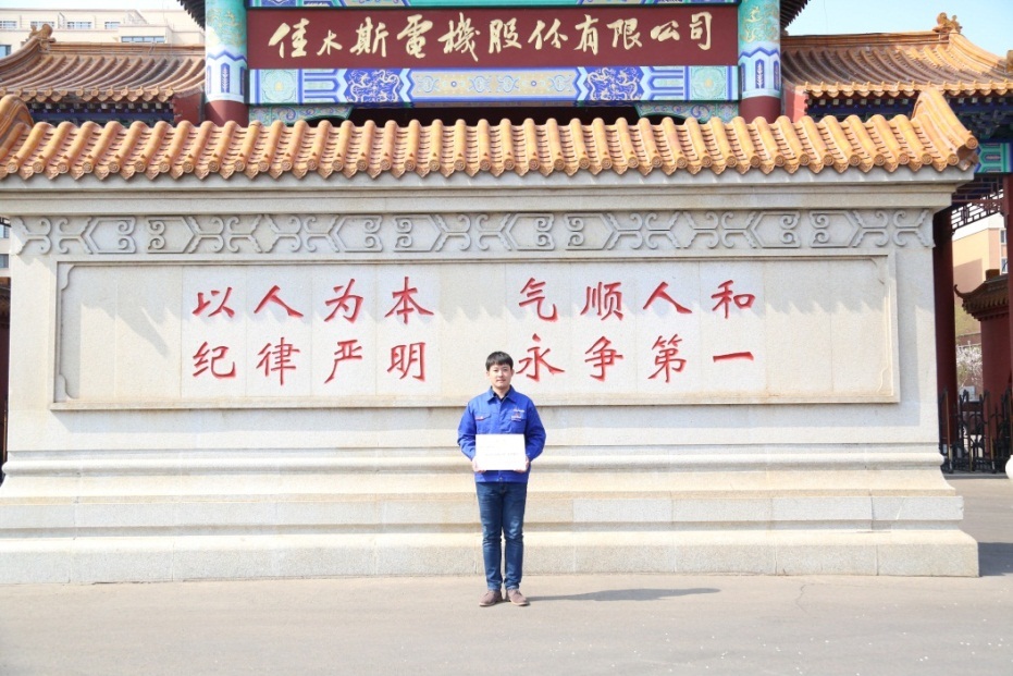 設(shè)計(jì)部高壓防爆電機(jī)設(shè)計(jì)室主任李興波獲得佳木斯第十二屆“佳木斯青年五四獎(jiǎng)?wù)隆毕冗M(jìn)個(gè)人稱(chēng)號(hào)。
