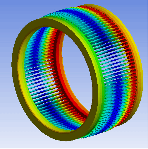 ?通過對(duì)電機(jī)風(fēng)路優(yōu)化設(shè)計(jì)及電機(jī)流場(chǎng)仿真分析,使風(fēng)路在電機(jī)內(nèi)部更加順暢,同時(shí)對(duì)溫度場(chǎng)和流體場(chǎng)耦合分析,通過熱仿真優(yōu)化筋條高度及導(dǎo)風(fēng)板位置,散熱效率提升20%。