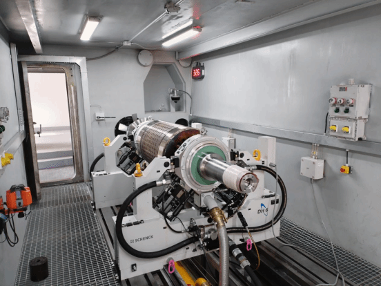 ?超高速轉(zhuǎn)子動(dòng)平衡:高速轉(zhuǎn)子動(dòng)平衡設(shè)備是高速大型電機(jī)制造的基礎(chǔ),佳電引進(jìn)了德國申克動(dòng)平衡機(jī),該平衡機(jī)是申克為佳電特制。使高速轉(zhuǎn)子動(dòng)平衡設(shè)備平衡精度G0.4,具有電子角度定位,可實(shí)現(xiàn)8000kg、15000rpm轉(zhuǎn)子的高速平衡、超速試驗(yàn)。