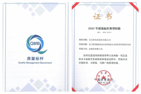 近日,2025年中國質量協(xié)會年會暨第三屆追求卓越大會在北京成功召開,哈電集團佳木斯電機股份有限公司(以下簡稱“佳電股份”)憑借“基于數(shù)智賦能的高壓電機制造全過程質量管理提升經(jīng)驗”,獲評中國質量協(xié)會2025年全國質量標桿。此項榮譽的背后,是國家權威機構對佳電股份創(chuàng)新質量管理模式的高度認可——其先進性、實踐性與推廣價值已成為裝備制造業(yè)高質量發(fā)展的標桿,更為傳統(tǒng)制造業(yè)轉型提供了可借鑒、可復制的“佳電方案”。